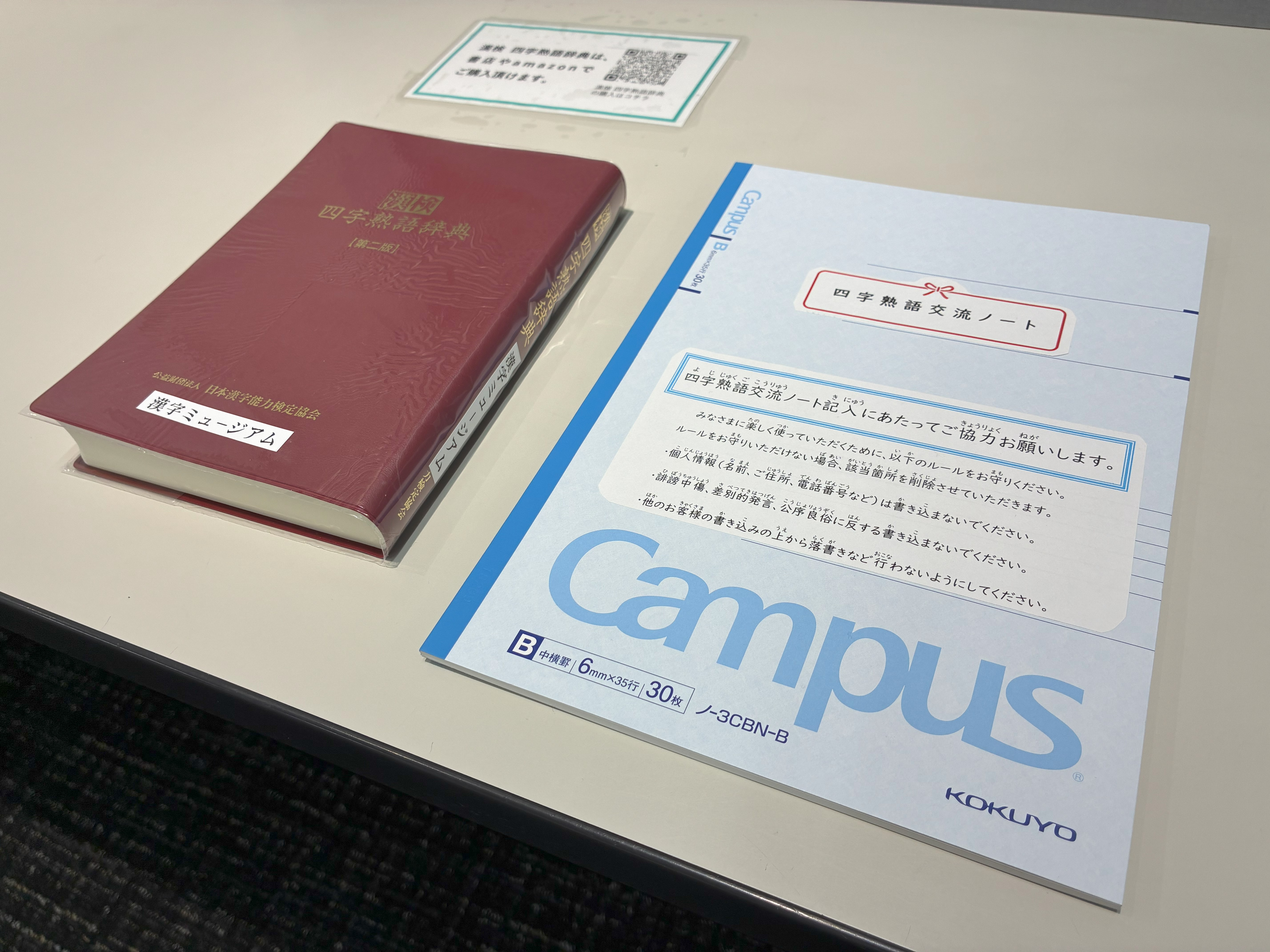体を動かす「漢字タッチ」ゲームや、来館者同士で四字熟語について交流できる「交流ノート」も設置